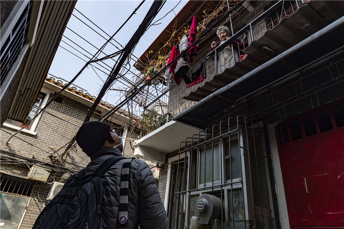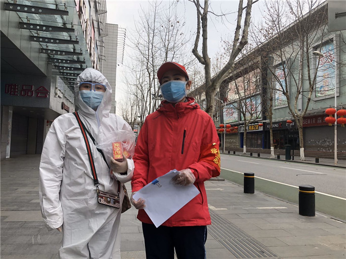 ▲2月24日,武汉武昌区中华路街楚材社区负责疫情排查的工作人员与志愿者。摄影段崴/人民画报