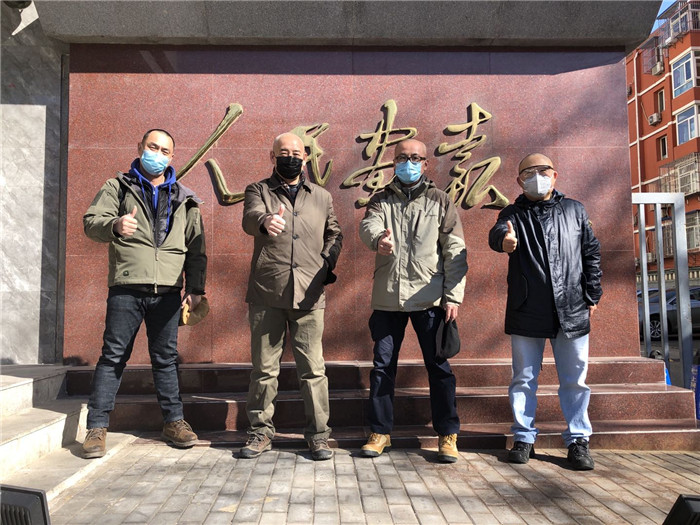▲2月22日上午,徐讯、段崴、马耕平、陈建(从右至左)出发前在人民画报社门前合影。
