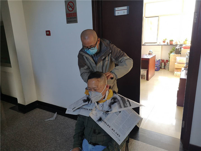 2月22日清晨,在人民画报社走廊里举行了一个特殊的仪式——理发,为即将前往武汉的四位摄影记者送行。领导们句句叮嘱与鼓励,“有什么困难及时通报,千万要注意防护,希望你们安全顺利……”