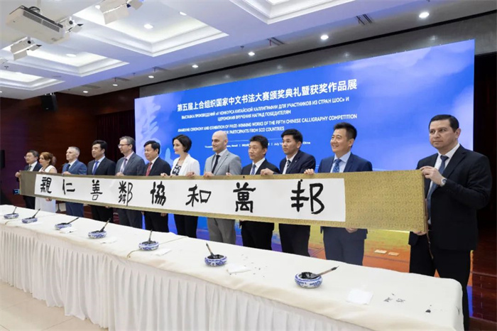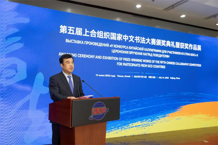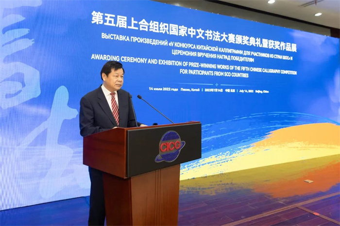 7月14日,由中国外文局、上海合作组织秘书处指导,中国外文局中东欧与中南亚传播中心(人民画报社)、中国—上海合作组织地方经贸合作示范区管理委员会、莫斯科中国文化中心共同主办的“第五届上合组织国家中文书法大赛”颁奖典礼暨获奖作品展在北京举行。