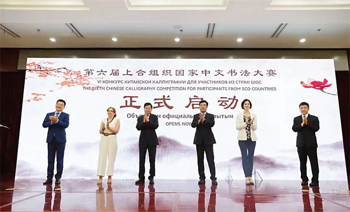 现场嘉宾共同启动“第六届上合组织国家中文书法大赛”