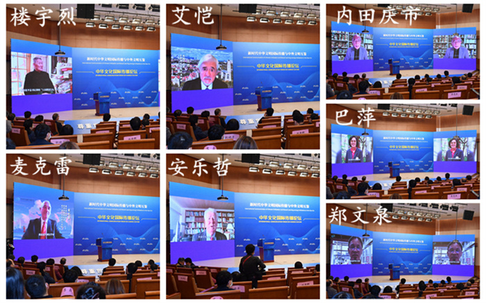 北京大学哲学系东方哲学教研室主任、北京大学宗教研究院名誉院长楼宇烈,美国汉学家、芝加哥大学历史系教授艾恺,意大利汉学家、北京外国语大学拉丁语言文化中心主任麦克雷, 国际儒学联合会副会长安乐哲,日本关西大学名誉教授、文学博士、中国近世语学会会长内田庆市, 泰国汉学家、朱拉隆功大学教授巴萍, 马来西亚汉学家郑文泉,通过视频方式在论坛发表致辞。