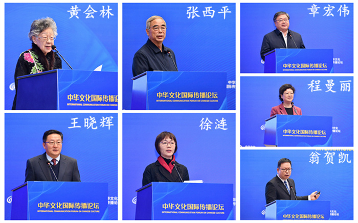 北京师范大学资深教授黄会林、北京外国语大学资深教授张西平、中国网总编辑王晓辉、中国国家画院副院长徐涟、故宫出版社有限公司董事长章宏伟、北京大学教授程曼丽、中华文化学院教授翁贺凯分别作主旨演讲。