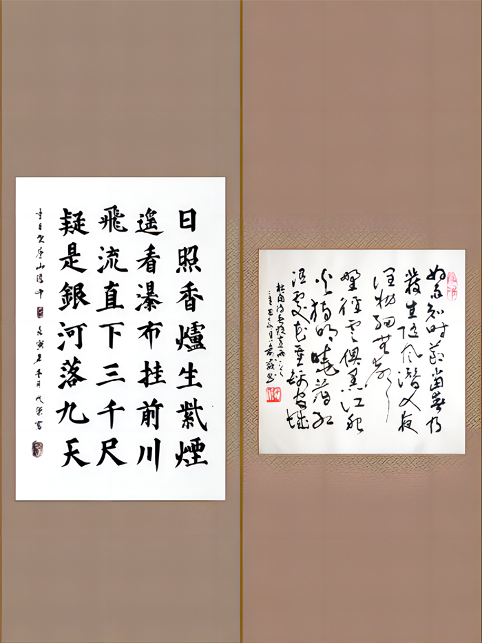毛笔组一等奖作品,获奖者分别为成荣(俄罗斯)、俞威(白俄罗斯)