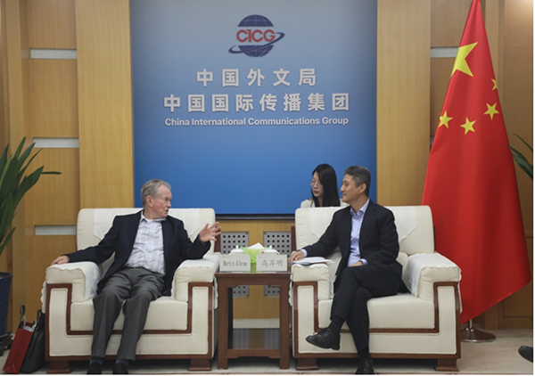10月16日,中国外文局副局长兼总编辑高岸明会见到访的英国社会科学院院士、知名社会学家马丁·阿尔布劳。局国际合作部、当代中国与世界研究院、新世界出版社主要负责同志参加会见。