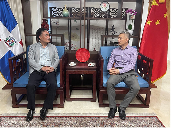 当地时间10月16日,中国外文局副局长陆彩荣一行拜会中国驻多米尼加大使陈鲁宁,双方就合作开展人文交流活动和国际传播等工作进行了深入探讨。