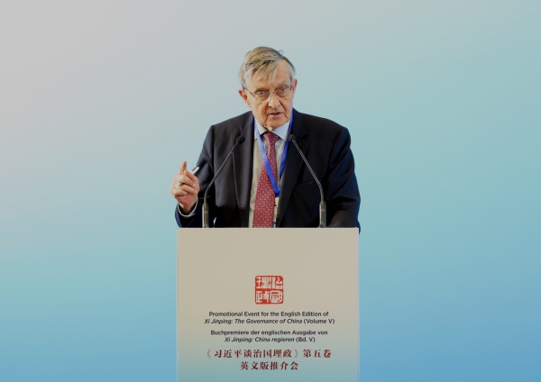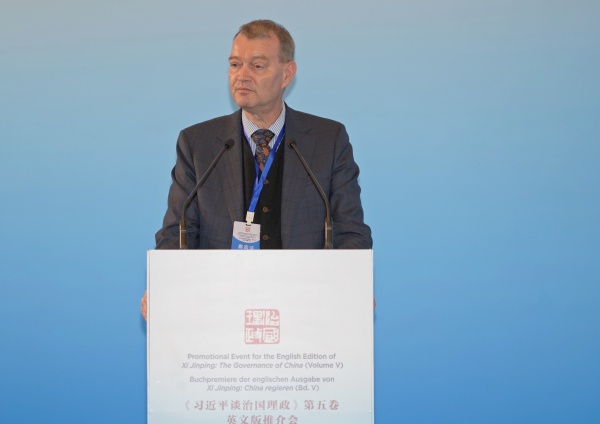 培高德回顾了《习近平谈治国理政》第一至五卷的出版历程,他指出,第五卷按主题分类收录了习近平主席系列讲话,这些讲话围绕中国持续成功的发展以及中国在世界上的角色展开,内容广泛精彩,译文流畅,阅读这本书有助于更好地理解习近平新时代中国特色社会主义思想和中国治理理念。