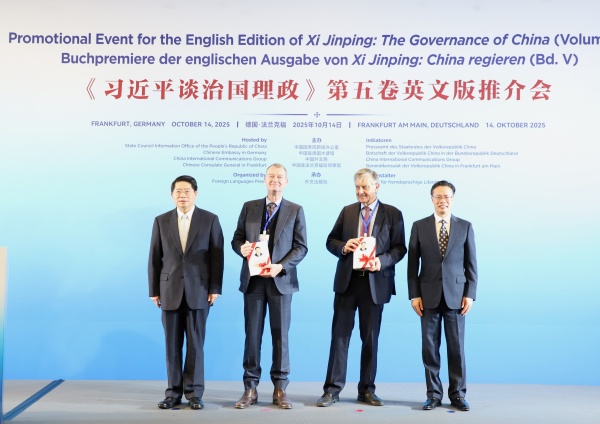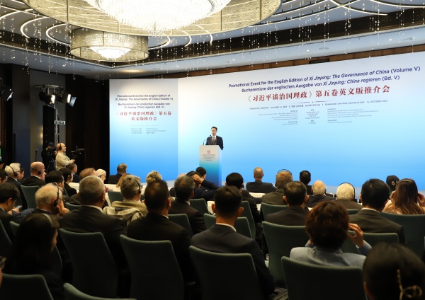当地时间10月14日,《习近平谈治国理政》第五卷英文版推介会在德国法兰克福举办。中国驻德国大使邓洪波,中国外文局副局长余应福,德国汉学家、历史学家培高德,德国黑森州国际部前部长博喜文出席活动并致辞。