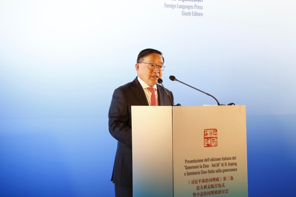 常勃表示,《习近平谈治国理政》第三卷意大利文版,与此前出版的第一、二卷意大利文版一道,将为更多意大利读者以母语阅读中国、读懂中国式现代化打开新的窗口,为推动中意两国文明互鉴架设了理解之桥。中方将向意各界提供英文版第四、五卷,为意大利读者和在意各国读者及时了解习近平主席治国理政理念,提供有益借鉴和重要参考。同时,两国机构将加快推进第四、五卷意大利文版的翻译出版工作,为意各界深入了解中国提供最新权威读本。