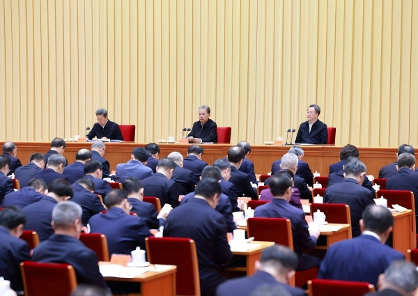 11月17日至18日,中央全面依法治国工作会议在北京召开。中共中央政治局常委、全国人大常委会委员长赵乐际出席会议并讲话,中共中央政治局常委、国务院副总理丁薛祥出席会议并传达中共中央总书记、国家主席、中央军委主席习近平重要指示。(新华社记者王晔摄)