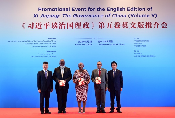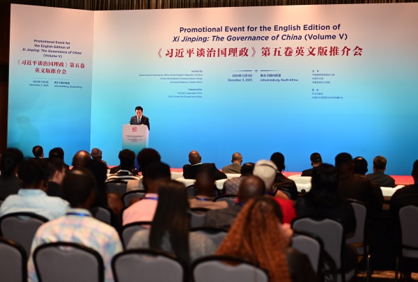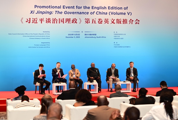 当地时间12月3日,《习近平谈治国理政》第五卷英文版推介会在南非约翰内斯堡举行。