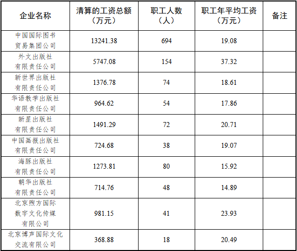 2024年中国外文出版发行事业局所监管企业工资总额信息披露