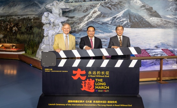 为纪念中国工农红军长征胜利90周年,4月18日,国际传播纪录片《大道——永远的长征》启动仪式在中国共产党历史展览馆长征主题展区举行。中国外文局局长常勃,中国共产党历史展览馆党委书记、馆长李宗远,纪录片讲述人、中国政府友谊奖得主、厦门大学美籍教授潘维廉出席启动仪式并共同为纪录片启幕。