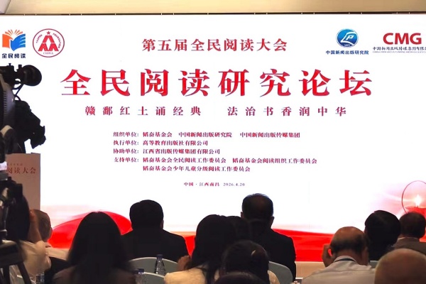 4月20日,第五届全民阅读大会·全民阅读研究论坛在江西南昌举办。全国政协副主席、民进中央常务副主席朱永新,江西省政协主席宋福龙,中国外文局局长常勃出席论坛并致辞,中国出版集团、中国教育出版传媒集团等单位负责人及全国出版、教育、学术、媒体界等百余位代表参加论坛,围绕全民阅读理论创新、红色基因出版转化、数智时代阅读服务等话题深入研讨交流。论坛以“赣鄱红土诵经典,法治书香润中华”为主题,由韬奋基金会、中国新闻出版研究院、中国新闻出版传媒集团等单位联合主办。