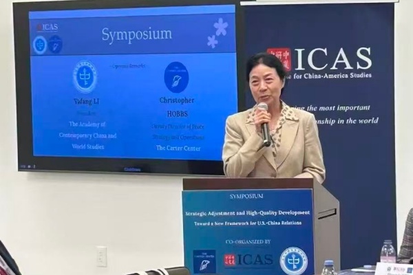 当地时间4月17日,“中美智库华盛顿专题对话”在美国首都华盛顿特区举办。中国外文局副总编辑、当代中国与世界研究院院长李雅芳,美国卡特中心和平项目副主任克里斯托弗·霍布斯(Christopher HOBBS),中美研究中心主任洪农等出席活动并致辞。