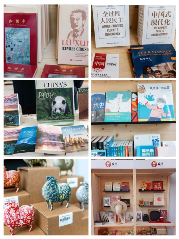 其中,主题图书展区重点展示《习近平谈治国理政》第五卷等重要著作,“中国关键词”“解码中国话语”系列知识产品,《鲁迅文集》等法文版文学著作,以及《千里江山图》《清明上河图》等中国经典书画册。和合文化展区既有《和合之美》《世界汉学家眼中的和合文化》等精品图书,也有“一根藤”、台绣、仙居针刺无骨花灯、黄杨木雕、晶雕手绘等体现和合精髓的台州手工艺品。特色文创展区展出来自云南楚雄彝族自治州以及贵州、内蒙古等地兼具艺术性与实用性的非遗特色产品。