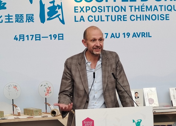 朱利安·帕佩利耶代表巴黎图书节组委会向中国外文局团组表示欢迎,并高度评价“遇鉴中国”中华文化主题展系列活动。他表示,中国团组参与巴黎图书节对于法国出版界非常重要,今年的展览给法国出版界和文化界带来了惊喜。巴黎图书节正在由图书展览向集出版、文化、传媒为一体的综合性文化平台转型,期待中国国际传播集团带领更多中国出版文化机构参展,不断深化中法乃至中欧在人文领域的对话合作。